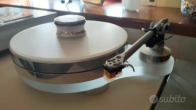 Giradischi trazione a cinghia, motore separato, piatto in metallo pieno dal peso di circa 16 kg, tappetino in acrilico con svasatura per l'etichetta del vinile, piedini in acciaio con sistema isolante, posizionabili con spostamenti mirati. Braccetto Transrotor JR su base Rega. Suono granitico e precisione teutonica. Completo di doppio imballo originale e documentazione completa. Unico proprietario, tenuto maniacalmente e pari al nuovo. Preferibile il ritiro diretto e/o spedizione tracciata. Imballaggio a prova di corriere maldestro.