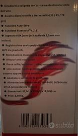 Vendo giradischi usb praticamente nuovo, usato non più di 3 volte!completo di scatola di imballaggio ed istruzioni. Ritiro presso abitazione o spedizione a carico dell'acquirente.