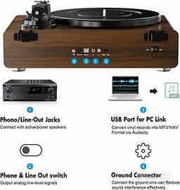 Vendo Giradischi Vinile , Giradischi Bluetooth con Altoparlanti Stereo HiFi Integrati, Giradischi Vintage, Funzione da Vinile a MP3/Phono Preamp/Aux-in/RCA.