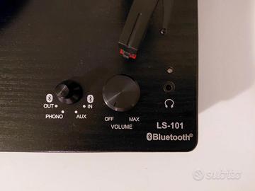 Lettore giradischi per vinile modello LS-101 BK marchio Lenco, funzione bluethoot e casse stereo integrate.