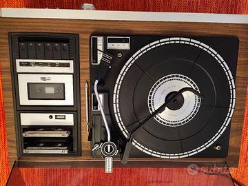 Giradischi vintage Sonix Continental 2000 con mangiacassette, cambiadisco automatico, radio AM/FM/LW, equalizzatore e due casse originali incluse. Meccanismo da regolare sia per il giradischi sia per il mangianastri; monta puntina dual side compatibile mono/stereo e include cavi adattatore da uscita proprietaria a RCA. Ottimo pezzo d’arredo e per appassionati di hi-fi vintage, venduto come da foto e da sistemare. Se ti interessa scrivimi subito in chat. Ritiro a domicilio su Fidenza, consegna pubblica su Parma , Reggio Emilia e Piacenza oppure spedizione a carico dell’acquirente