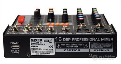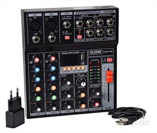 Mixer professionale compatto e completo delle funzioni richieste da musicisti e cantanti. Unico nel suo genere, è alimentabile da USB. Dispone di un processore DSP a 16 impostazioni, lettore Mp3 e alimentazione Phantom per i canali 1 e 2. E’ possibile trasferire brani al PC o riprodurre brani provenienti dal PC.