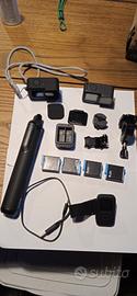 lotto GoPro completo di accessori, tutto ottimamente tenuto e funzionante, non vendo a pezzo! Go pro + guscio protezione, cavalletto estensibile, accessori vari per installazione su bici e casco, 4 batterie, caricabatterie, telecomando remoto