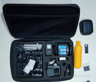 GoPro Hero 10 Black perfetta con molti accessori descritti di seguito. 5 batterie di cui 3 GoPro Carica batterie Telesin a 3 punti di carica Lente super grandangolo Telecomando GoPro originale custodia in gomma antiurto Mini treppiede vari accessori di fissaggio Scatola GoPro Galleggiante cilindrico Valigetta nera porta accessori.