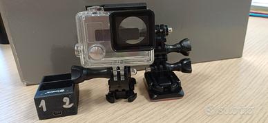 action cam go pro. praticamente mai utilizzata. perfettamente funzionante. completa di accessori e scatola originale. options 2 batterie ausiliarie con caricabatterie.