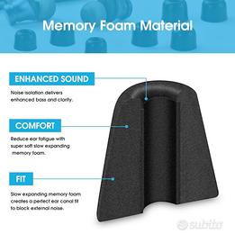 AURICOLARI IN MEMORY FOAM: Il gommini cuffie memory foam è elastico, riempie lo spazio e mantiene la forma. Gli auricolari di ricambio sono traspiranti e possono isolare efficacemente i rumori esterni e migliorare la qualità del suono dei bassi.