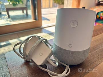 Google Home altoparlante smart in colorazione bianca con tessuto grigio, usato ma in perfette condizioni, senza difetti estetici e comprensivo di alimentatore.