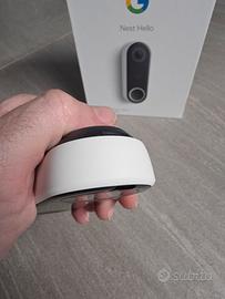 Vendo videocitofono smart Google Nest Hello (versione cablata), leader per qualità video e integrazione domotica. Il dispositivo è perfettamente funzionante e permette di monitorare l'ingresso di casa con risoluzione HD, visione notturna e notifiche intelligenti. Dettagli sul funzionamento: Il dispositivo presenta la batteria tampone interna esaurita (difetto comune di questo modello). Cosa comporta: Non può essere collegato alla vecchia suoneria fisica/meccanica di casa. Soluzione inclusa: Funziona perfettamente se utilizzato in combinazione con gli speaker o i display Google Nest Hub / Mini. Quando qualcuno suona alla porta, gli speaker squillano e il Nest Hub mostra istantaneamente le immagini di chi è presente, permettendo anche di rispondere a voce. Cosa riceverai: Google Nest Hello (Doorbell). Scatola originale. Staffa per il fissaggio a muro. Note: Ideale per chi ha già un ecosistema Google Home e vuole un videocitofono di alta qualità a una frazione del prezzo del nuovo. Località: Disponibile per ritiro a mano a Palermo o spedizione.