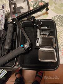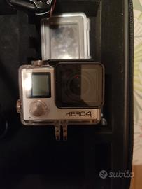 vendo GoPro 4 silver usata, in ottime condizioni. usata pochissimo. incluso vendo anche custodia con tutti accessori che vedete in foto tra cui, bastone orientabile e fisso, seconda batteria, custodia impermeabile, fascia per la testa, fascia per petto, attacco per montarlo sul casco.