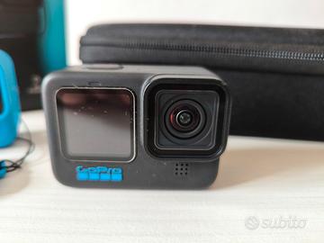 Vendo GoPro Hero 10, usata pochissimo, vetro temperato su obiettivo e schermi da quando acquistata; vendo con custodia originale, filo e cover bumper. Manca il mount (come da foto). Batteria recentemente sostituita con GoPro Enduro.