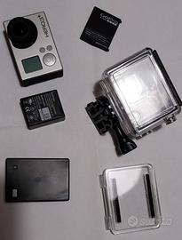 Vendo GoPro - HERO 3+ in buono stato d'uso - usata sempre con cura; Completa di batteri + batteria supplementare di capacità maggiore + cavo di ricarica +custodia subacquea completa di nr. 2 sportelli di diverse dimensioni ( da utilizzare con le 2 diverse batterie); tutti gli accessori sono originali GoPro; Spedizioni non incluse; Si preferisce vendita a vista con possibilità di visionare e provare il materiale in vendita. No perditempo, prezzo (55 euro) non trattabile. Prezzi spedizione non incluse nei prezzi sopra descritti. Vendita tra privati con esclusione della garanzia; Si ribadisce che il prezzo non include eventuali spese di spedizioni e la stessa e su responsabilità a carico del cliente.