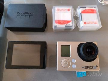 Vendo GoPro Hero 3+ completa di accessori aggiuntivi come display touch da montare sul retro per avere accesso a memoria ed istantanea di registrazione. Cover impermeabile fino a 30mt e cover maggiorata impermeabile fino a 10mt per sportellino display. Bastone selfie e 3 batterie. varie clip e adattatori.