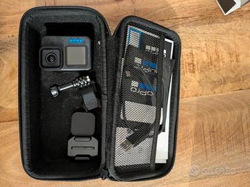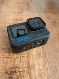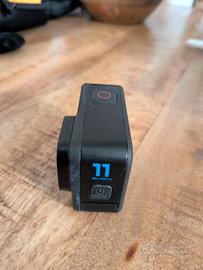 Vendo GoPro Hero Black 11 usata con accessori in foto (cavo, gancio, adesivo e copri-obiettivo), batteria, istruzioni e scatola originale. La camera è perfettamente funzionante e come si vede dalle foto è leggermente scolorita. Sono già installati i vetrini di protezione su obiettivo e schermino posteriore.
