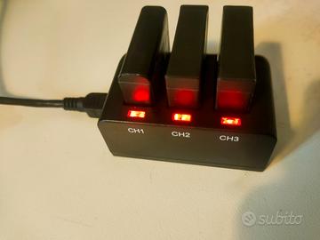 🔹 Caricatore triple-slot per caricare fino a 3 batterie contemporaneamente