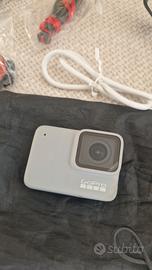 Vendo GoPro HERO7 Silver in ottime condizioni, usata pochissimo e perfettamente funzionante. Completa di accessori: Mini-tripod/impugnatura Supporto frame Cavo USB-C originale per ricarica e trasferimento dati Custodia morbida La videocamera registra in qualità ottima, ideale per viaggio, sport, vlog, moto, mare, ecc. Non presenta problemi né graffi evidenti, pronta all’uso.