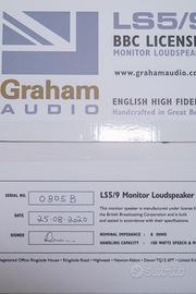 Vendo meravigliosa coppia di diffusori High-End Graham LS 5/9 in vero legno di Ebano, finitura extra a richiesta (1.390€) e condizioni pari al nuovo, complete di doppi imballi originali , certificati originali, imballi interni in condizioni pari al nuovo, stand originali e ponticelli, praticamente come quando usciti dal negozio. Usate in ambiente non fumatori e senza animali.
