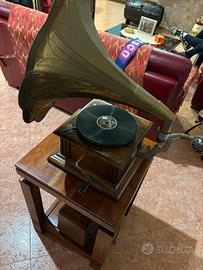 Grammofano va solo sostituito un pezzo ed è funzionante ed è anche a manovella prezzo TRATTABILE .