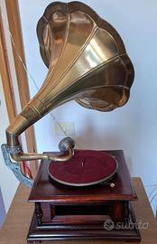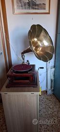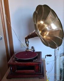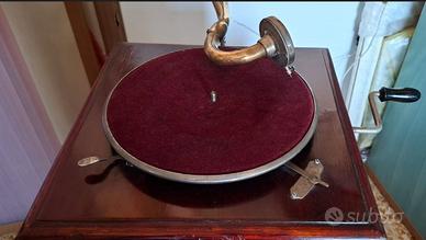 Elegante grammofono vintage in buono stato. •Funzionante possibilità variare velocità riproduzione •Tromba originale •Corpo in legno. Solo ritiro a mano 100€
