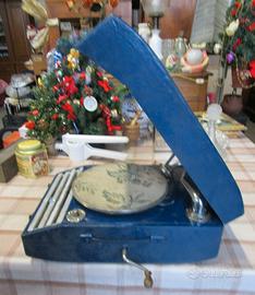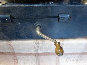 grammofono portatile a manovella, interamente meccanico, per uso con disco in gommalacca pesante