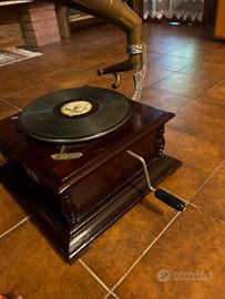 Pezzo ideale per appassionati di antiquariato, collezionisti o per arredare ambienti in stile retrò. La meccanica è completa e la tromba ha una bellissima resa estetica.