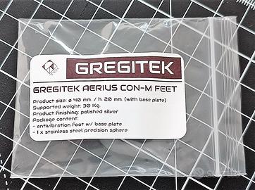GREGITEK Aerius CON M/S: realizzati da un pieno di alluminio centrifugato ad alta densità lavorato con macchine a controllo numerico. Questa versione di piedino Aerius nasce per sostituire le tradizionali punte coniche di cui rappresenta l'evoluzione grazie all'utiilizzo della sfera mobile che svolge la funzione di ulteriore elemento dissipante.