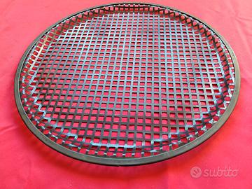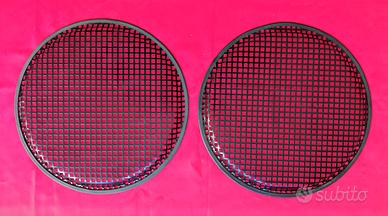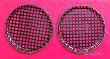 Coppia di griglia a nido d'ape per protezione componente cassa acustica (woofer, subwoofer da 38cm)misura:15 pollici di diametro.Complete di morsetti e viti per il fissaggio