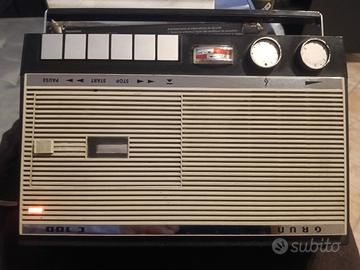 IlGrundig C 100è unregistratore a cassette portatile storico, introdotto nel 1965, noto per essere uno dei primi registratori a utilizzare il formato di cassetteDC International, non compatibile con le moderne cassette Compact Cassette. È un pezzo da collezione , abbastanza raro .L'oggetto è funzionante, non presenta danni sullo chassis.