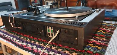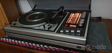 Favoloso sistema audio prodotto dal 1968 dalla Blasonata casa Tedesca , presente in vari telefilm vintage come il tenente colombo e affini... peso stratosferico sui 15 Kg interamente in metallo e legno. Piatto Dual 1225 recentemente revisionato , funziona perfettamente pur avendo i suoi anni.... mentre per quanto concerne il resto anch'esso funziona perfettamente , grande stereofonia che all'attivazione e previo l'utilizzo di una antenna giusta regalerà grandi emozioni tipiche del suono Grundig dell'epoca per la sua imponenza e qualità del suono ! La scala W Meter fa qualche capriccio... o forse occorre sciogliere meglio l'antenna... il resto come si può vedere dalle foto è un vero gioiello a cominciare dal coperchio , bello robusto , indistruttibile... Il Cursore mix stereofonia e quadrifonia non è originale e a scopo estetico... Finemente ravvivato più che restaurato dal sottoscritto ,penso sia uno degli esemplari più belli in circolazione... Non c'è la puntina, ma è facilmente reperibile sul web.