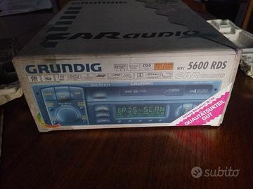 Autoradio Grundig WKC 5600 RDS 25Wx4, perfettamente funzionante sia parte radio che meccanica cassette, autoreverse, colorazione display variabile, comando caricatore CD, parte frontalino removibile antifurto, codice antifurto, connettore collegamento fonte esterna audio (CD portatile, modulo bluetooth, ecc.) rarissimo modello top di gamma, acquistata personalmente nuova nel 1990, scatola, documenti e adesivi originali, ed accessori aggiuntivi.