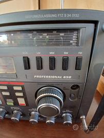 Radio vintageGrundig Satellit 650 Professional, un ricevitore radio mondiale di fascia alta prodotto in Germania tra il 1985 e il 1988. Caratteristiche principali: Include un preselettore motorizzato, display sia analogico che digitale, e 32 memorie per le onde corte (SW). Ricezione: Eccellente ricezione in onde lunghe (LW), medie (MW), corte (SW) e FM. Audio: Dotata di un amplificatore audio potente e altoparlanti di alta qualità per un suono ricco.