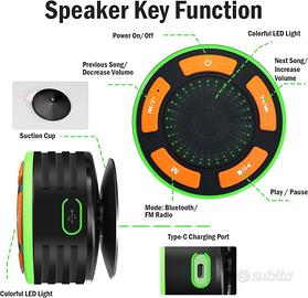 Hadisala Altoparlante per Doccia Bluetooth, Impermeabile IPX7 con Luci LED d'Ambiente, Bassi Ricchi, Suono Stereo e Microfono.
