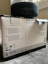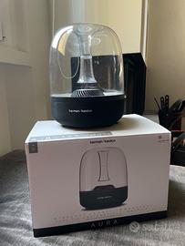 Harman Kardon Aura Studio includono un woofer da 4.5” (112 mm), 6 tweeter da 1.5” (40 mm), potenza amplificatore 1x30W + 2x15W, risposta in frequenza 50Hz-20kHz e Bluetooth 3.0. L’Harman Kardon Aura Studio è un capolavoro di design e ingegneria audio, con il suo woofer da 4.5” (112 mm) e i sei tweeter da 1.5” (40 mm) che creano un palcoscenico sonoro tridimensionale eccezionale. Design Iconico La cupola trasparente con luce dinamica cattura lo sguardo, trasformando ogni stanza in un’opera d’arte moderna mentre diffonde un suono cristallino e immersivo. La potenza di 1x30W + 2x15W, unita alla risposta in frequenza da 50Hz-20kHz, garantisce bassi profondi e alti dettagliati senza compromessi. Il prodotto funziona si connette alla rete e al Bluetooth. I bassi si sentono un po’ gracchianti. Probabile danno riparabile: al woofer/ subwoofer, facilmente riparabile a basso prezzo online o in negozi di elettronica. Qualche piccolo segno sulla plastica trasparente, ma per il resto in condizioni perfette come da foto. Viene venduto nella sua scatola originale.