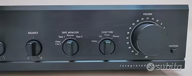 L'Harman/Kardon HK6100 è un amplificatore stereo di alta qualità noto per la sua eccellente qualità del suono e la struttura robusta. Risposta in frequenza: da 0,5 Hz a 150 kHz Distorsione armonica totale: 0,09% Fattore di smorzamento: 60 Sensibilità di ingresso: 2,2 mV (MM), 135 mV (linea) Rapporto segnale/rumore: 80 dB (MM), 98dB (linea) Impedenza di carico: 4Ω (minimo) Dimensioni: 443 x 103 x 361mm Peso: 6.4kg Ingresso Turntable Ingresso Tuner Ingresso Cassette Tape Deck Ingresso Compact Disc Player Ingresso Video Comp. TV Tuner Ingresso Open Reel Tape Deck Uscita per 4 Casse (2 + 2) prezzo leggermente trattabile Solo ritiro, non spedisco.