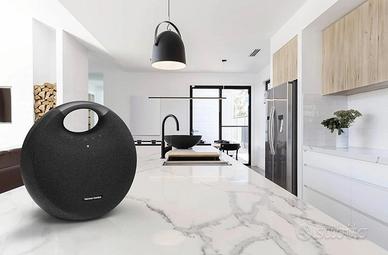 Con la sua silhouette rotonda unica, il rivestimento in tessuto premium e il manico in alluminio per una facile portabilità, Harman Kardon Onyx Studio 6 combina stile e comfort in un sofisticato altoparlante Bluetooth. Ha un design impermeabile IPX7 per l'uso ovunque in casa senza preoccuparsi di preoccuparsi. Offre fino a 8 ore di riproduzione con una singola carica e un doppio suono wireless, è possibile collegare due altoparlanti Harman Kardon Onyx Studio 6 per migliorare l'esperienza di ascolto musicale. Con il suo design iconico ma sottile, Harman Kardon Onyx Studio 6 è l'aggiunta perfetta a qualsiasi interno.