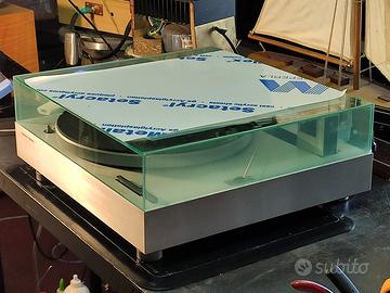 Ciao. Quando vedi di persona un ST-7, alcune cose risaltano: è un design straordinariamente attraente e semplice all'esterno, con un sorprendente aspetto "futuristico della metà del secolo". Non ci sono pezzi di plastica sul basamento, che è costruito con sottili piani di alluminio spazzolato. I controlli touch sono presenti sulla base superiore, che erano roba da incubi fantascientifici nei primi anni '70. Uno stroboscopio a pozzetto posto a sinistra del piatto in alluminio da 1,1 kg verifica e, eventualmente corregge mediante due pich control separati, la velocità di rotazione. È un giradischi con un'ergonomia superba rispetto ad altri design giapponesi dell'epoca... in effetti, sembra più un Bang and Olufsen con i muscoloni che un gira made in U.S.A.. Il braccio di tracciamento parallelo è semplice da usare e dispone di bacchetta rimovibile che rende il cambio della testina/puntina un gioco da ragazzi. La qualità costruttiva complessiva è eccellente. Il giradischi misura, in cm, 41.9 il fronte, 41.3 la profondità e 15.7 l'altezza... pesa 10 kg. Descrizione del giradischi Harman Kardon ST7 a 2 velocità con trasmissione a cinghia (1975-1976). Una macchina di alta precisione che è stata assemblata e regolata con la massima cura per offrirti il più alto standard di produzione di dischi possibile all'interno dello stato dell'arte di oggi. Specifications. Drive method: precision ground belt - Speeds: 33 and 45rpm - Motor: brushless dc (hall effect) - Platter Weight: 1.1 kg - Rumble: 68dB - Wow and Flutter: 0.08% - Tonearm: linear tracking - Dimensions: 157 x 419 x 413 mm - Weight: 10.0 kg. Grazie per l'attenzione, buona vita e buona Musica a te. Andrea