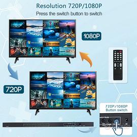 Metodo di commutazione: è possibile cambiare i segnali di ingresso tramite il pulsante del pannello o la console remota IR, con il telecomando a infrarossi, non c'è bisogno di lasciare il sedile, basta goderselo. Dispositivi di ingresso HDMI: interruttore di gioco, TV via cavo e PC. Dispositivo di uscita HDMI: monitor, proiettore e TV.
