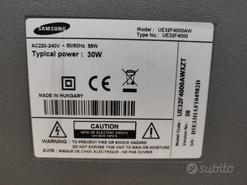 vendo HDMI TV LED Samsung UE32F4000AW. schermo 32 polici. con telecomando. tutti canali funziona senza decoder. samsung ue32f4000aw. dimensioni schermo: 81 3 cm (32'') risoluzione del display: 1366 x 768 pixel tipologia hd: hd rapporto d'aspetto nativo: 16:9. formato del segnale digitale: dvb-c dvb-t. dimensioni e peso: larghezza (con supporto): 737 9 mm. profondità (con supporto): 252 6 mm. altezza (con supporto): 487 mm. peso (con supporto): 5 6 kg. larghezza (senza supporto): 73 8 cm. profondità (senza supporto): 4 95 cm. altezza(senza supporto): 43 6 cm. peso (senza supporto): 5 2 kg.