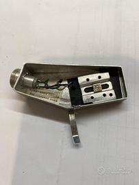 Vendo porta-testina (headshell) originale Lenco, specifico per i modelli iconici L75 e L78 con braccio dritto. Un componente vintage essenziale per chi vuole restaurare o mantenere l'originalità del proprio giradischi svizzero.Caratteristiche e Condizioni:Originale al 100%: In alluminio satinato, completo della sua levetta di sollevamento.Slitta inclusa: Completo della rara slitta (sled) interna originale e della vite centrale per la regolazione dell'allineamento.Cablaggio presente: Include i 4 cavetti colorati e l'etichetta originale interna con lo schema dei collegamenti ancora perfettamente leggibile.Stato: Ottime condizioni estetiche, i pin di contatto posteriori sono puliti e senza ossidazione.Pezzo pronto all'uso, ideale per chi cerca ricambi originali di difficile reperibilità.Spedizione rapida e imballaggio accurato a prova di urti.