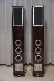 Heco The New Statement Diffusori casse da pavimento (a torre) Top di gamma Heco anno 2013 (ultimo listino 5000€) Timbrica simile a B&W, Dynaudio, ProAc. 3 vie bass-reflex Pilotabili in triwiring e/o in tri amplificazione Regolazione per tweeter e midrange su due livelli (+- 2dB). Midrange con magnete in ALNICO ed emissione a dipolo. Driver: woofer 2 x 8“, midrange 1 x 6.5”, tweeter 1 x 1” Frequenze di crossover: 230 Hz, 3.200 Hz Risposta in frequenza: 18 ÷ 52.000 Hz Impedenza: 4 – 8 Ω Sensibilità : 93dB Potenza amplificatore consigliata: 30 - 500 Watts Potenza applicabile: 300 watt rms / 500 watt max Dimensioni: (HxWxD): 1245 x 292 x 450 mm Peso: 48,8 kg cad. Completi di manuali, accessori e imballi originali, causa dimensioni e peso non spedisco. Dimensioni imballi in cartone: 1360 x 440 x 560 mm cad.