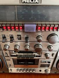 Uno dei migliori boombox mai prodotti, tra i più quotati e ricercati. Mai importato in Italia, acquistato in Francia a metà anni ‘80. Prodotto da Onkyo con tre nomi diversi, Helix, Clairtone e Conion. Funziona perfettamente a parte le due piastre che necessitano di cinghie nuove come tutti gli stereo con più di 20 anni, facilmente reperibili. Lo uso regolarmente con dispositivo bluetooth collegato alle uscite audio posteriori. Così potente che è difficile usarlo a più della metà del volume. Unico difetto sportello cassetta non originale ma si può trovare come ricambio. Le ultime due foto si riferiscono agli ultimi venduti e quelli in vendita su nota piattaforma. Non rispondo a offerte ridicole, evitiamo di perdere tempo.