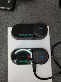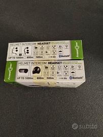 Coppia di auricolari per caschi con interfono fra i dispositivi. Funzionano qnch indipendentemente come auricolari bluetooth per cellulari. Io prezzo è per la coppia. La plastica dei dispositivi risulta un po' appiccicosa al tatto (rovinata). Uno dei dispositivi ha la scocca leggermente rotta ma funziona correttamente. Tutti gli accessori originali e caricabatteria.