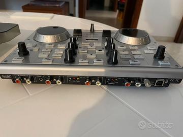 CONSOLE PER DJ HERCULES DJ Console MK4 con Scheda audio integrata. Controller a doppio banco per il mixaggio di tracce audio digitali. Puoi mixare 2 tracce musicali utilizzando i controlli di DJ Console Mk4. Ottime condizioni con cavo collegamento PC. Non si accetta restituzione. Caratteristiche principali Audio integrato Uscita mix (canali 1-2): 2 RCA per hi-fi e mixer 1 jack stereo da 1/8" (3,5mm) per altoparlanti multimediali Uscita preview (canali 3-4): Jack da 1/4" (6,35mm) per cuffie 2 RCA per altoparlanti Ingresso microfono: 1 Presa jack da 1/4" con manopola del volume per parlare sopra la musica 2 Ingressi stereo: 2 x 2 ingressi RCA, per mixare anche sorgenti audio esterne Ingressi compatibili con: Phono (giradischi) Linea consumer (-10dBv) (per lettori MP3, ecc.) Linea pro (+4dBu) (per apparecchiature da studio e lettori CD) Linea boosted (+8dBu) (per lettori CDJ Pioneer) Dimensioni: 26,67cm x 18,54cm x 13,97cm Peso: 2,56 lb / 1,15kg Cover da trasporto Software per mix Dj VirtualDJ DJC Edition Compatibile con Windows e Mac OS Non si accetta restituzione.