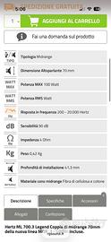Vendo Midrange Hertz serie Mille ML 700.3 Legend da 70mm. scheda tecnica in foto Sono in ottime condizioni ma presentano qualche segno