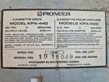HI-FI car lettore cassette preamplificato Pioneer KPX 440 serie Component, auto reverse, comandi elettronici, Dolby, selettore nastri, ricerca brani, controlli alti/bassi, loudness, completo di plancia estraibile, tutti i connettori integri, istruzioni italiane, funzionante in ottime condizioni, per appassionati di componenti car audio vintage di alto livello