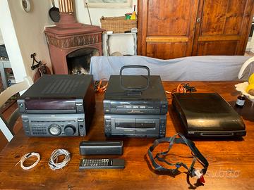 Impianto Hi Fi compresa di 2 casse da 90W, triplo slot lettore cd, doppio slot mangiacassette, e giradischi in vinile. Presenti (attacco per il microfono)