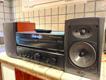 Sistema Hifi con componenti Denon e Boston Amplificatore integrato PMA 655 R 50 watt rms a 8 Ohm Lettore multi CD DCM 280 vassoio a 5 compact disk Diffusori acustici Boston Cr 75 89 db da 15-100 Watt a 8 Ohm 2 vie più bass reflex Disponibili imballi del cd e dellì'amplificatore.