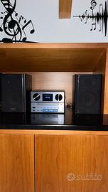 Sperimenta audio di alta qualità con il PHILIPS TAM8905/10 Micro Music System. Questo sistema tutto-in-uno offre un'impressionante uscita di 100W, riempiendo il tuo spazio con un suono ricco e potente. Trasmetti senza sforzo la tua musica preferita tramite Bluetooth o Spotify Connect, e goditi migliaia di stazioni globali con radio internet e capacità DAB+ FM. Il lettore CD accoglie CD standard e MP3-CD, consentendoti di rivisitare le tue collezioni musicali classiche. Progettato con funzionalità moderne e un'estetica classica, il TAM8905/10 presenta un'unità centrale in alluminio opaco e cabinet per altoparlanti in legno. I suoi altoparlanti in stile libreria incorporano woofer da 5,25” e tweeter a cupola per alti nitidi e bassi profondi, rendendolo ideale per qualsiasi soggiorno o area living open space. Il telecomando intuitivo mette le funzioni essenziali a portata di mano, mentre il chiaro display a colori mostra la copertina degli album e le informazioni sulle canzoni. Personalizza la tua esperienza di ascolto con la funzione di controllo del suono digitale, che offre stili sonori preimpostati adattati a diversi generi. Che tu stia ascoltando hip-hop o musica classica, il TAM8905/10 esalta il meglio delle tue melodie. Eleva la tua esperienza audio domestica con questo elegante e versatile micro sistema musicale.