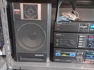 Vendo stereo compatto 3 pezzi separati, Radio, amplificatore, Tape musicassette, tutto funzionante, anche il musicassette, casse a 2 vie 90 watt in legno, tutto in buone condizioni, completo e tutti i tasti funzionanti.