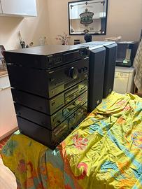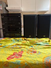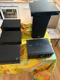 Impianto Hi-Fi perfettamente funzionante, corredato da due casse frontali in legno scuro Technocs e due Surround Technocs