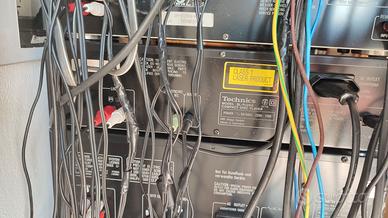 Vendo impianto Hi-fi Technics del 1990 completo di: - Giradischi SL-J110R (coperchio senza cerniere e braccio non funzionante) - Amplificatore SV-X933 - Tuner ST-930 - Equalizzatore SH-E65 - Lettore CD SL-PJ26A (su alcuni CD le prime traccie saltano, da rettificare) - Doppia piastra cassette RS-X933 - Coppia di casse SB-CS5 - Telecomando originale Leggere bene: Sono state modificate le lunghezze di alcuni cavi come da foto, l'impianto ha alcuni segni d'usura sulla scocca esterna, buono stato di conservazione generale. Possibilità di visionarlo presso domicilio.